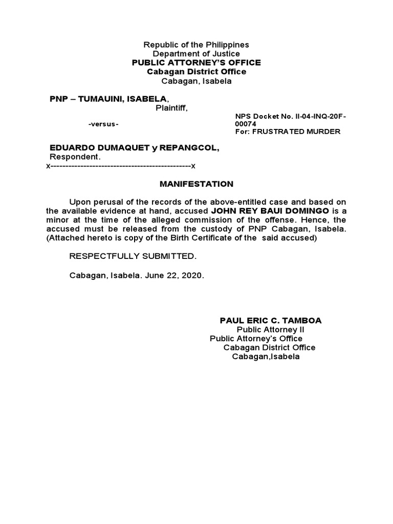 accused must be released from the custody of PNP Cabagan, Isabela.