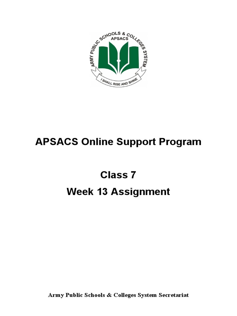 Class: 7 Week 13