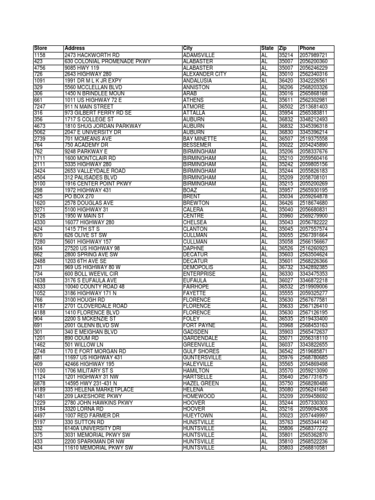 726 2643 HIGHWAY 280 ALEXANDER CITY AL 35010 2562340316