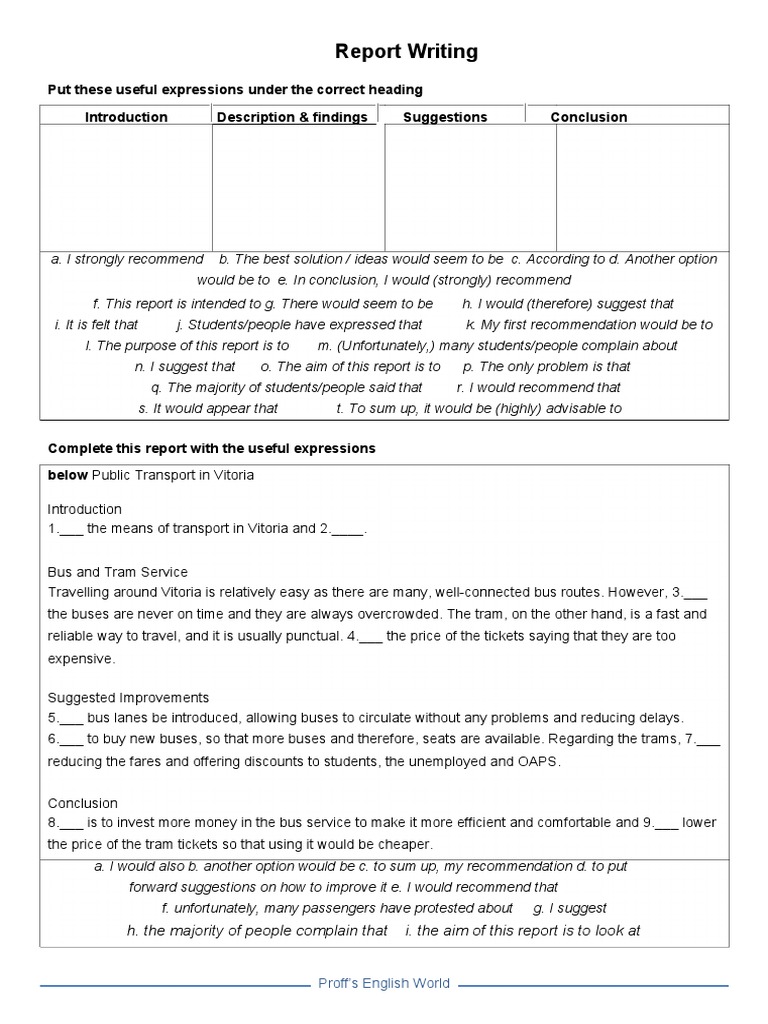 Complete this report with the useful expressions