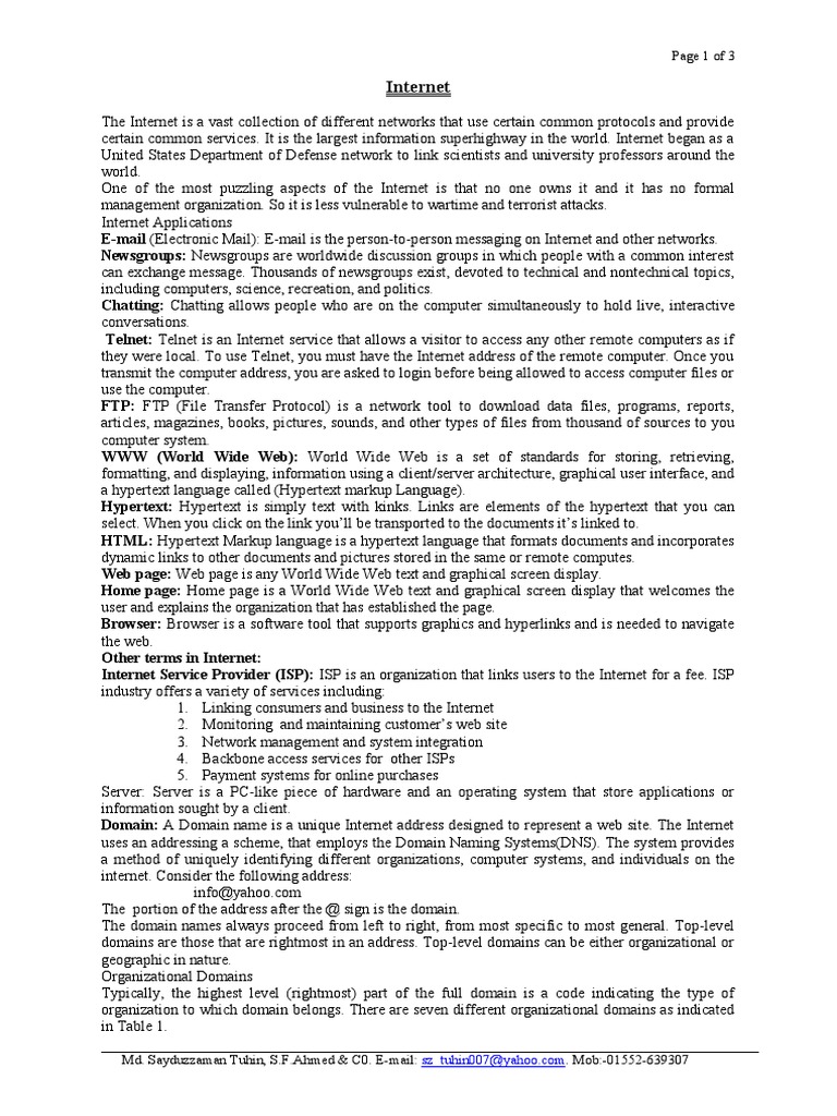 certain common services. It is the largest information superhighway in the world. Internet began as a
