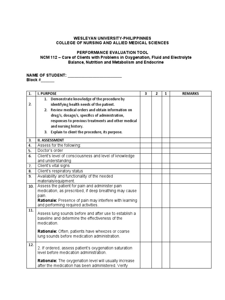 NCM 112 – Care of Clients with Problems in Oxygenation, Fluid and Electrolyte