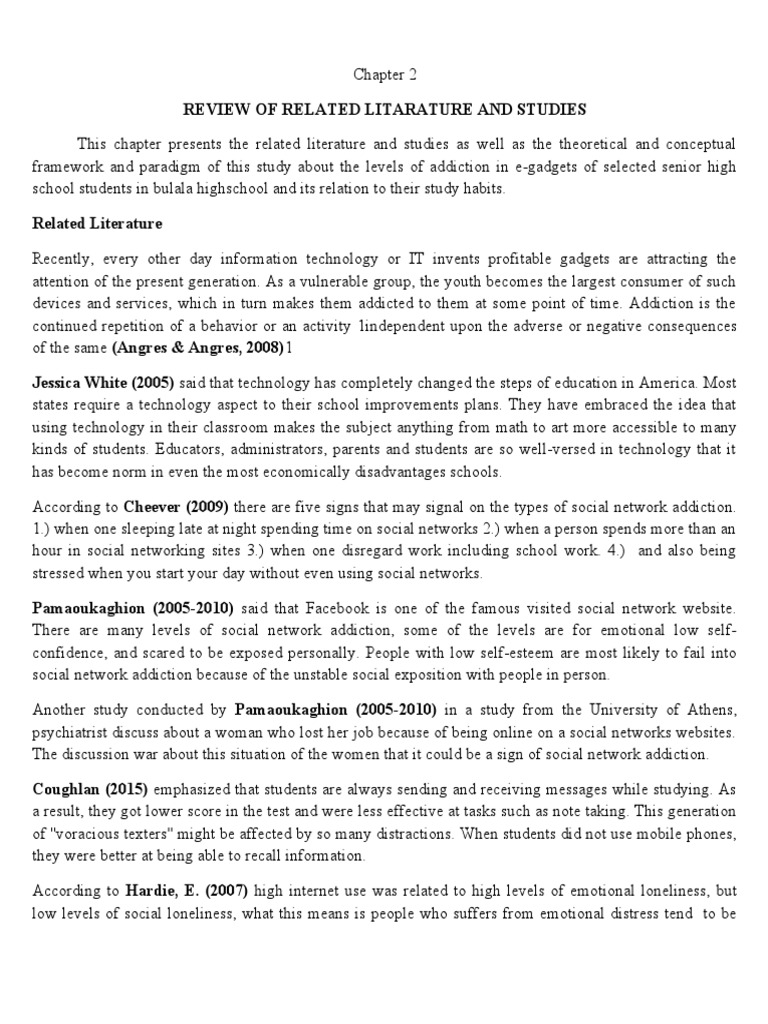 The study focuses on determining the levels of addiction in e-gadgets of selected senior high school
