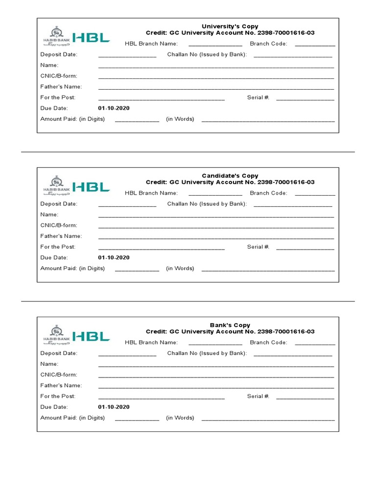 HBL Branch Name: ________________ Branch Code: ____________