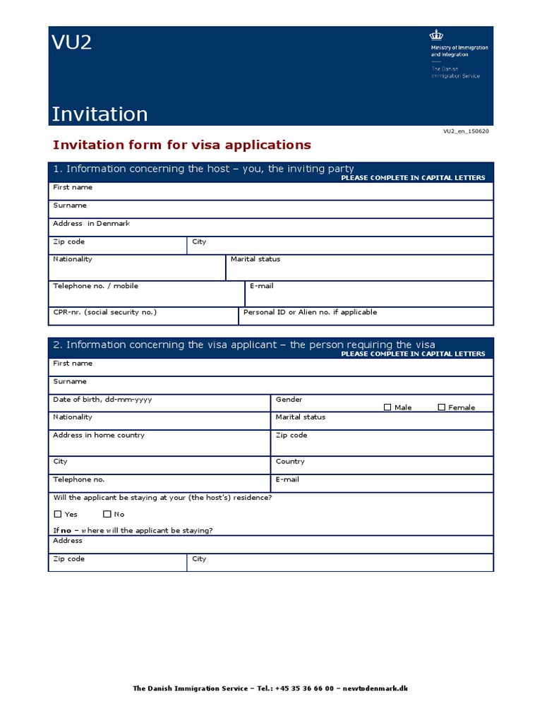 Invitation form for visa applications