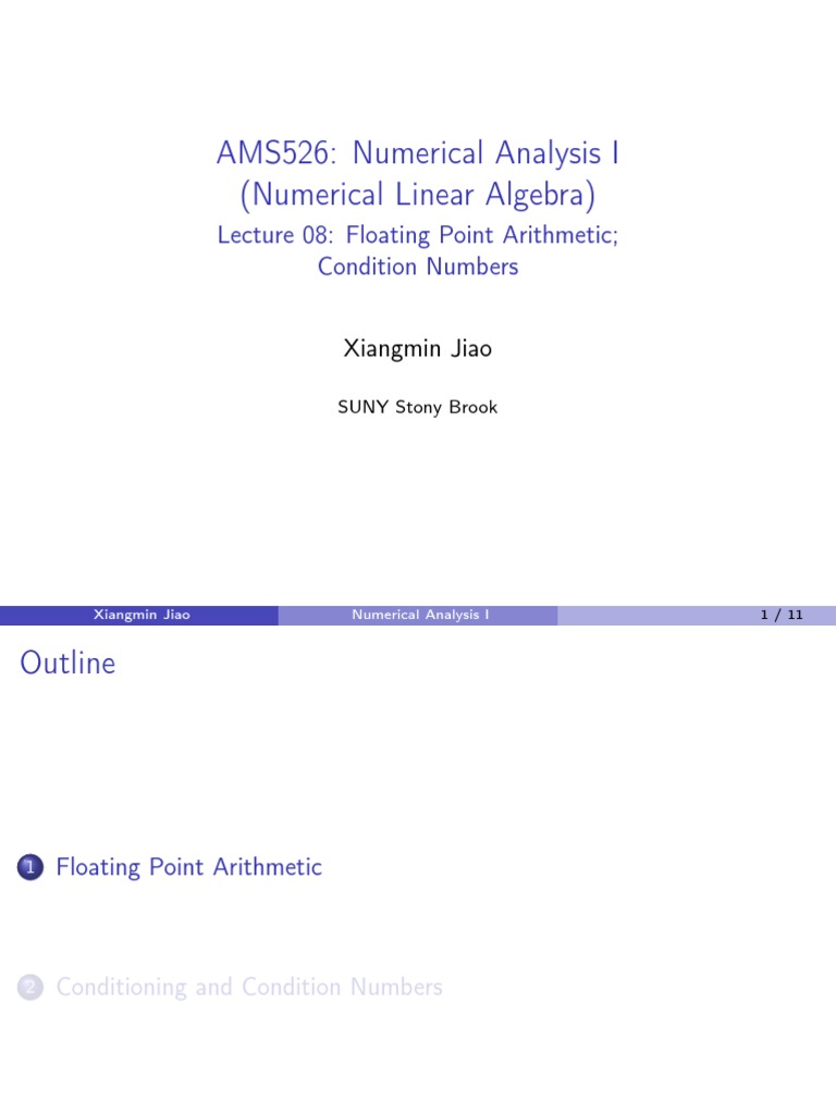 Xiangmin Jiao Numerical Analysis I 11 / 11