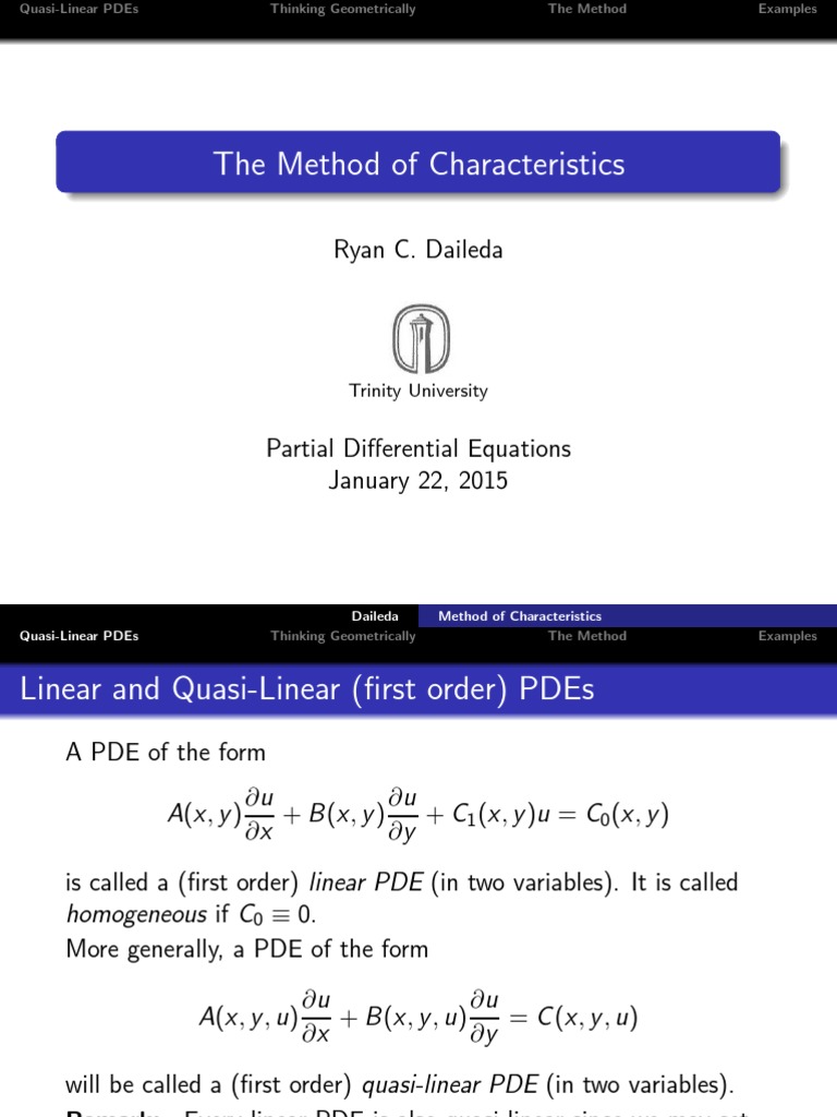 Quasi-Linear PDEs Thinking Geometrically The Method Examples