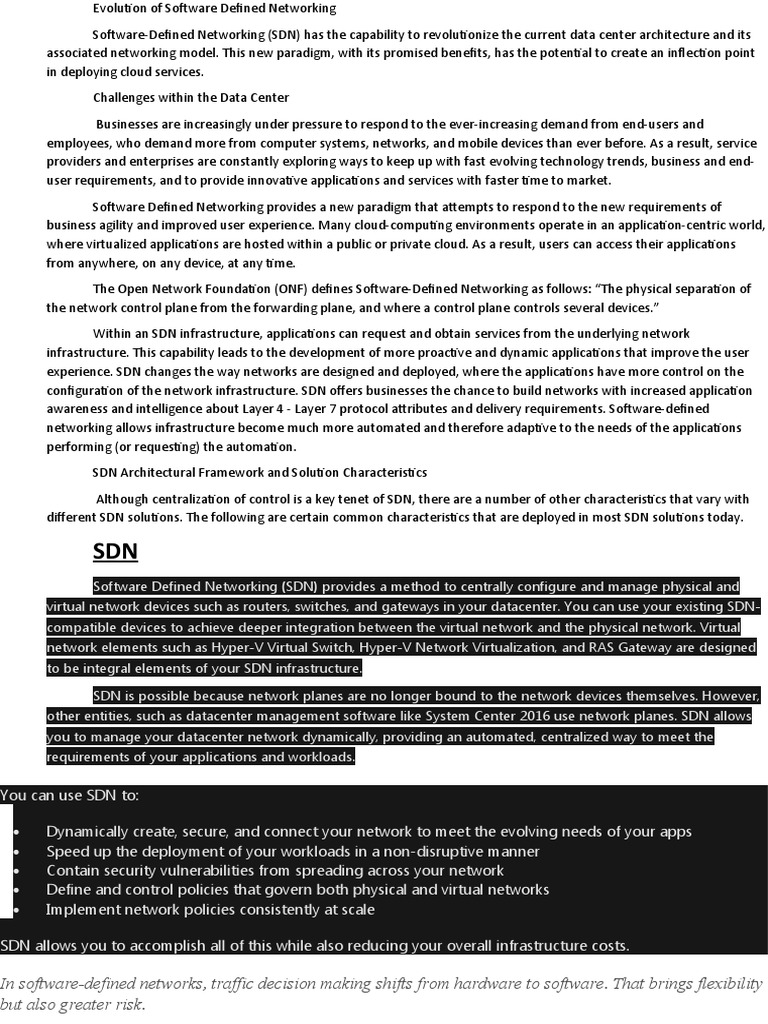 chokepoints and what to do with malicious actors. Software-defined networking (SDN) initiates a shift, with