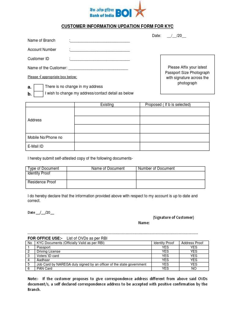 CUSTOMER INFORMATION UPDATION FORM FOR KYC