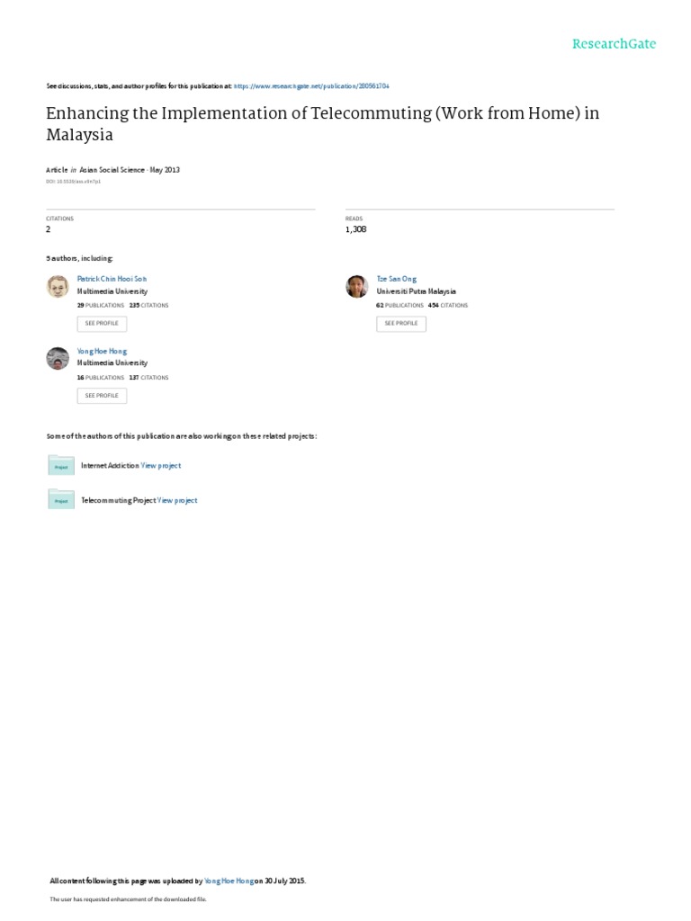 Enhancing The Implementation of Telecommuting (Work From Home) in Malaysia