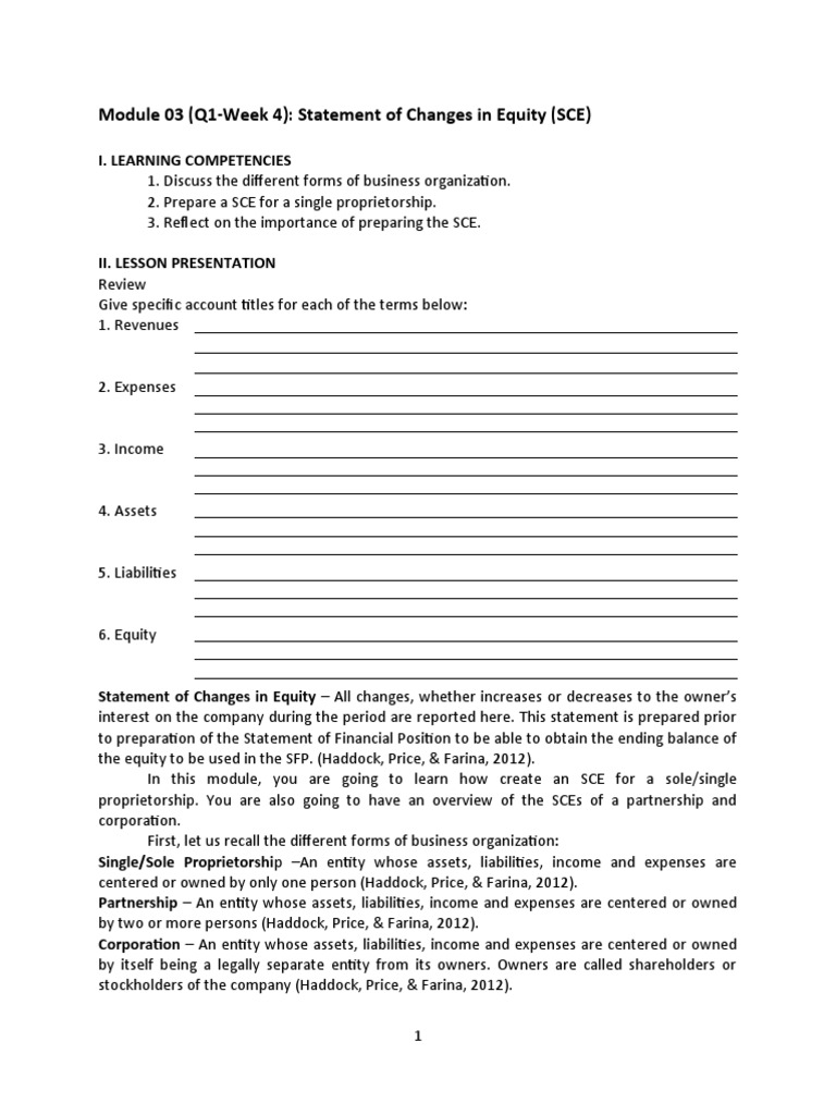 Module 03 (Q1-Week 4): Statement of Changes in Equity (SCE)