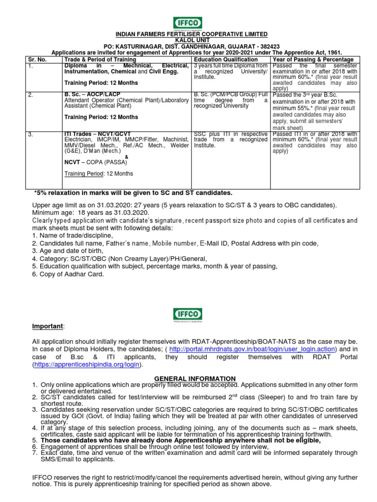 IFFCO reserves the right to restrict/modify/cancel the requirements advertised herein, without giving any further