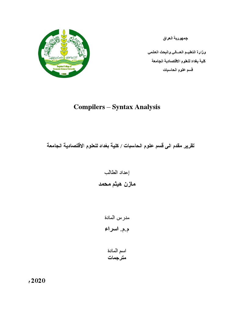 تقرير مقدم الى قسم علوم الحاسبات /كلية بغداد للعلوم االقتصادية الجامعة