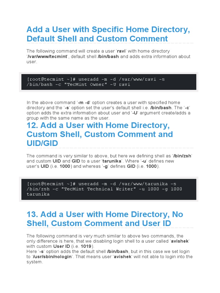 directory and the ‘-s‘ option set the user’s default shell i.e. /bin/bash. The ‘-c‘