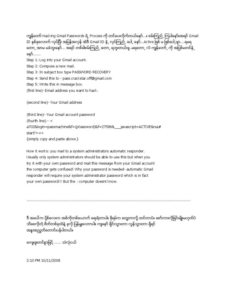 ကၽြန္ေတာ္ Hacking Gmail Passwords ရဲ႕ Process ကုိ တင္ေပးလုိက္တယ္ေနာ္...