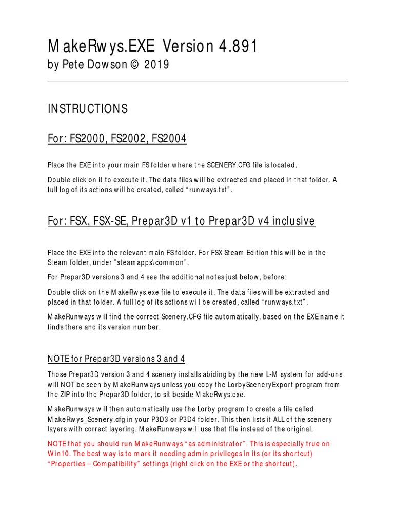 For Prepar3D versions 3 and 4 see the additional notes just below, before: