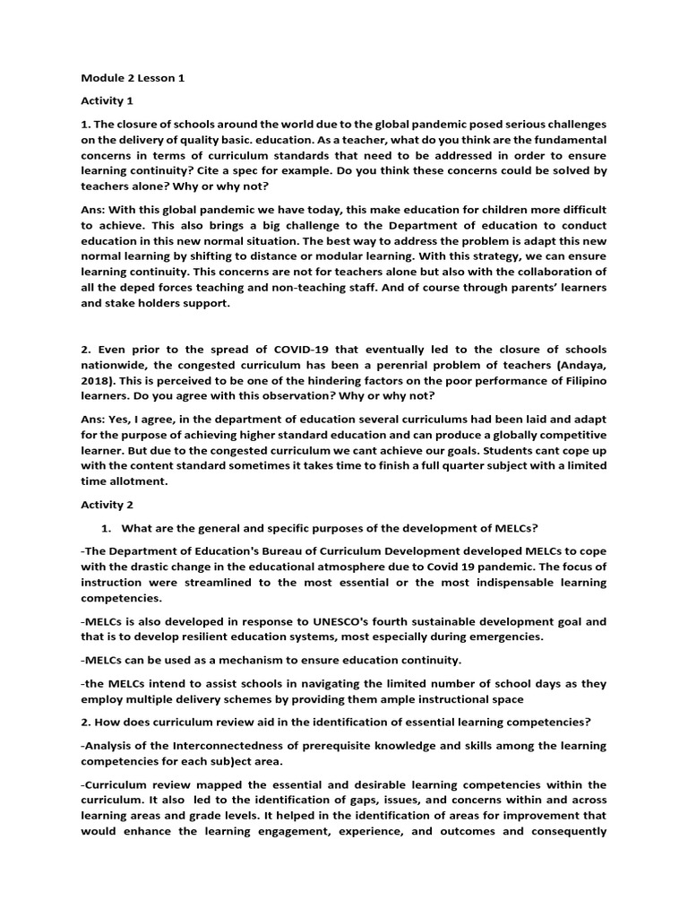 In your LAC Session, discuss and share your answers to Activities 1-3 in this lesson. Discuss
