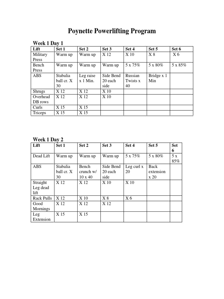 Bench Warm up Warm up Warm up 5 x 75% 5 x 80% 5 x 85%