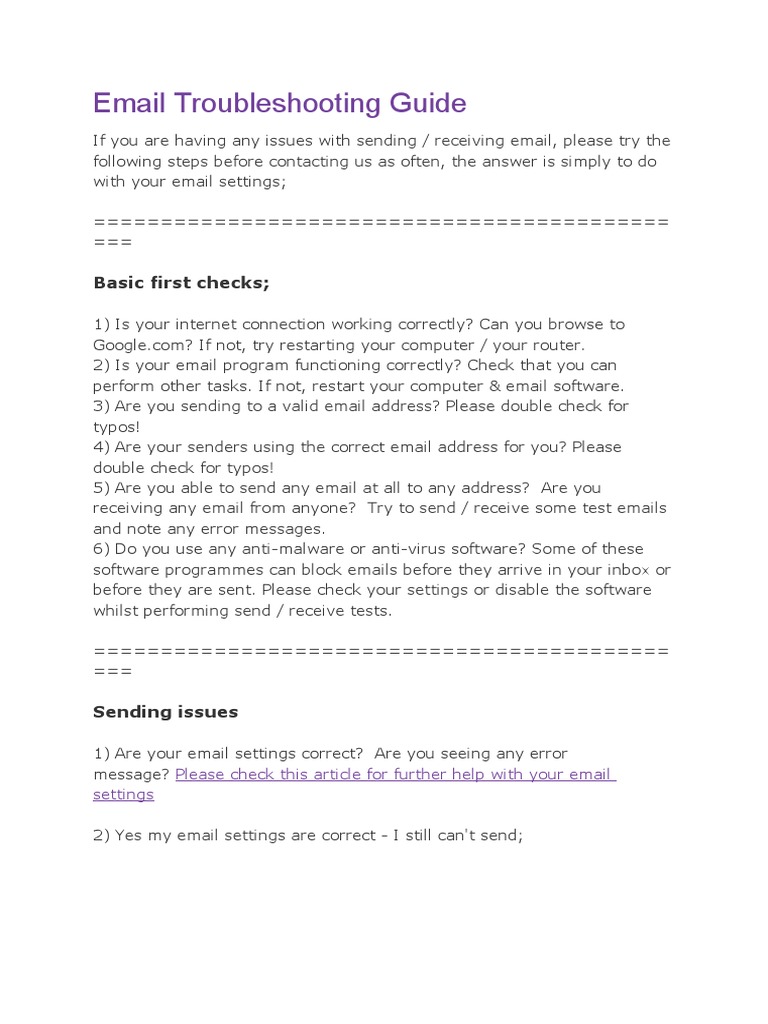 Email Troubleshooting Guide