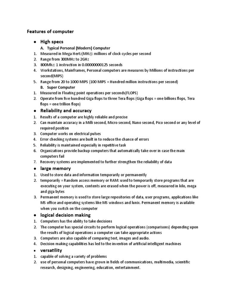 Features of computer