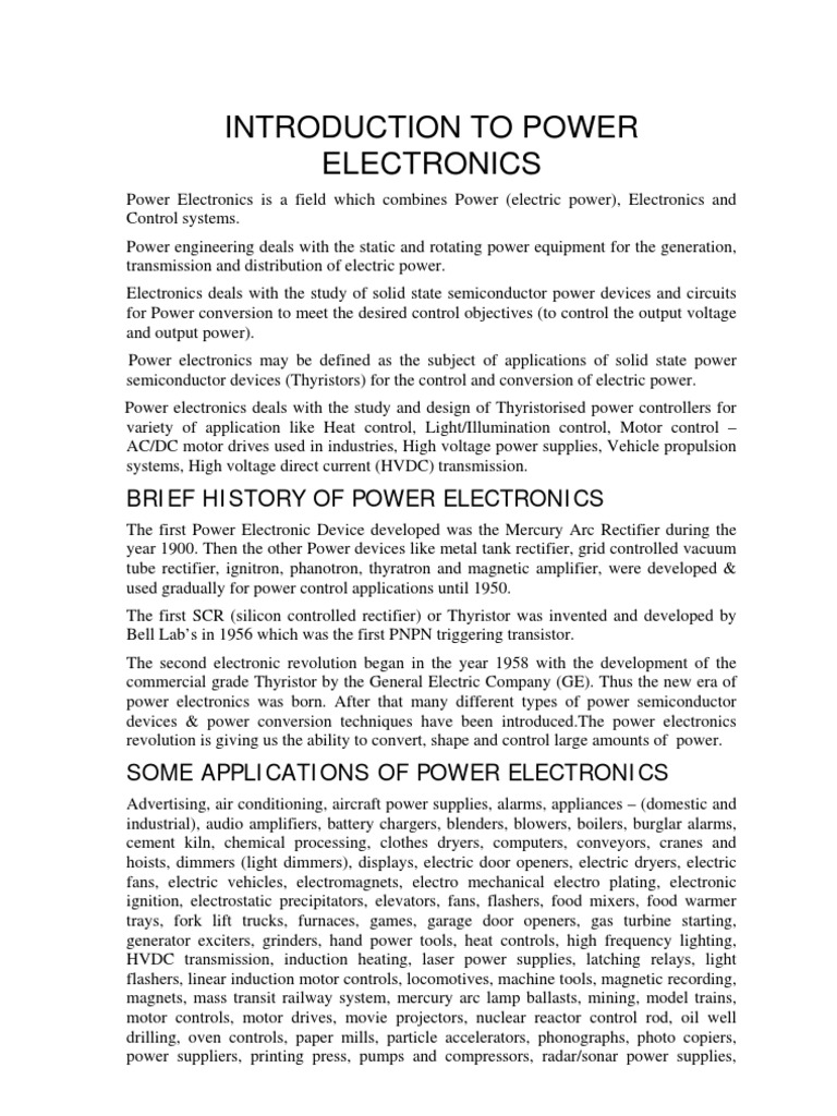 Electronics deals with the study of solid state semiconductor power devices and circuits