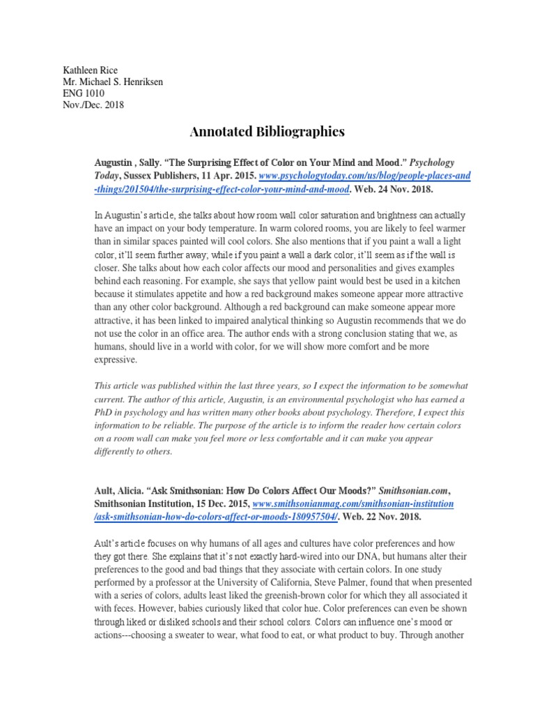 information to be reliable. The purpose of the article is to inform the reader how certain colors