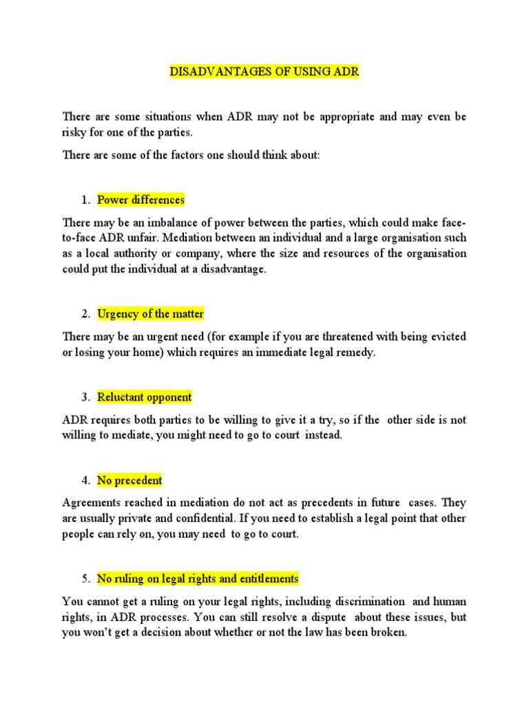 rights, in ADR processes. You can still resolve a dispute about these issues, but