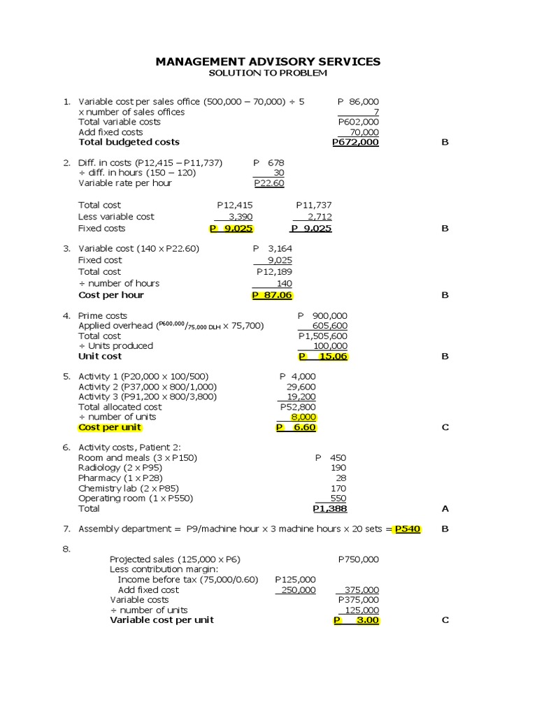 1. Variable cost per sales office (500,000 – 70,000) ÷ 5 P 86,000