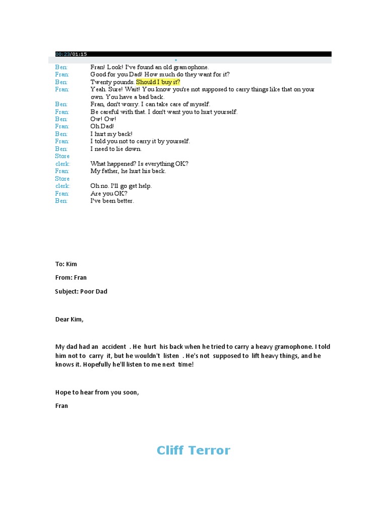 My dad had an accident . He hurt his back when he tried to carry a heavy gramophone. I told