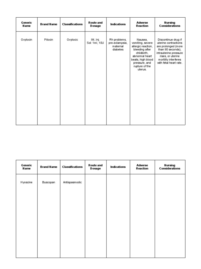 Oxytocin Pitocin Oxytocic IM, Inj. Rh problems, Nausea, Discontinue drug if