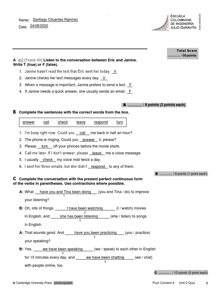 © Cambridge University Press photocopiable Four Corners 4 Unit 2 Quiz 3