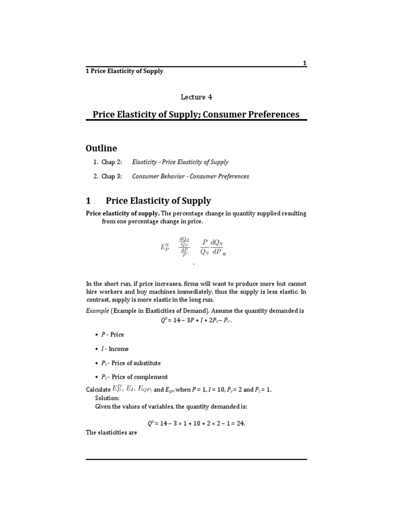 1. Chap 2: Elasticity - Price Elasticity of Supply