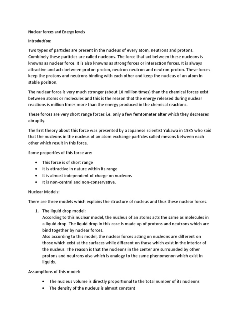 There are three models which explains the structure of nucleus and thus these nuclear forces.