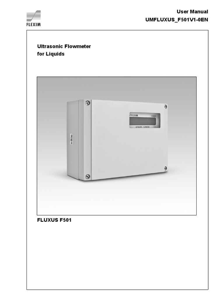 This user manual has been written for the personnel operating the ultrasonic flowmeter FLUXUS. It contains important in-