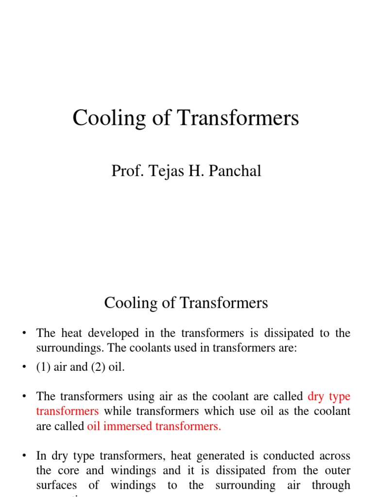 • 1. Oil Natural (ON): Oil as a coolant has two distinct
