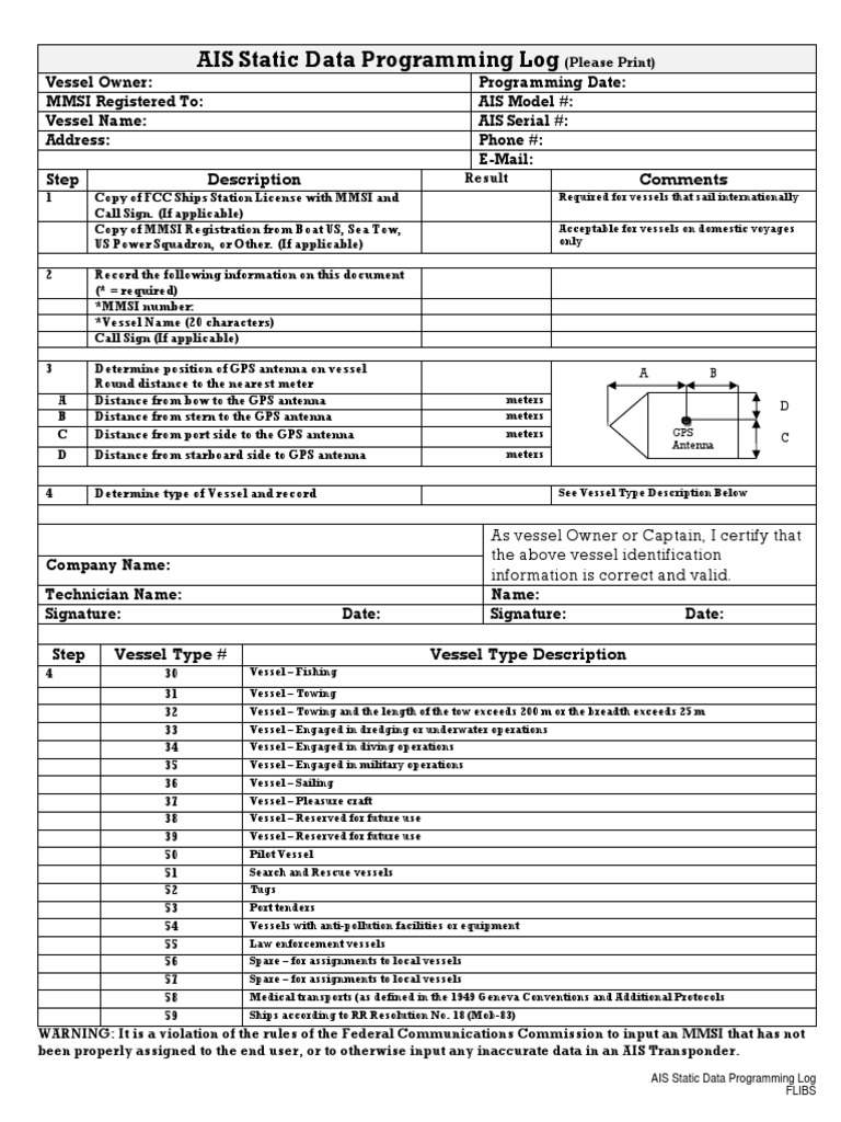 been properly assigned to the end user, or to otherwise input any inaccurate data in an AIS Transponder.