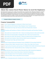 This document provides a crash course on important Excel topics and formulas to help users become proficient in Excel. It contains a list of 43 major Excel topics that cover key features like formulas for addition, subtraction, multiplication, division, percentages, counting, lookups, pivot tables, charts, and more. Mastering these topics will allow users to start using Excel like a pro quickly. The full course videos on these topics can be accessed by visiting www.myelesson.org or calling 9752003788.
