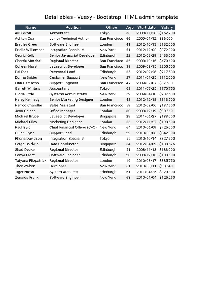 Ashton Cox Junior Technical Author San Francisco 66 2009/01/12 $86,000