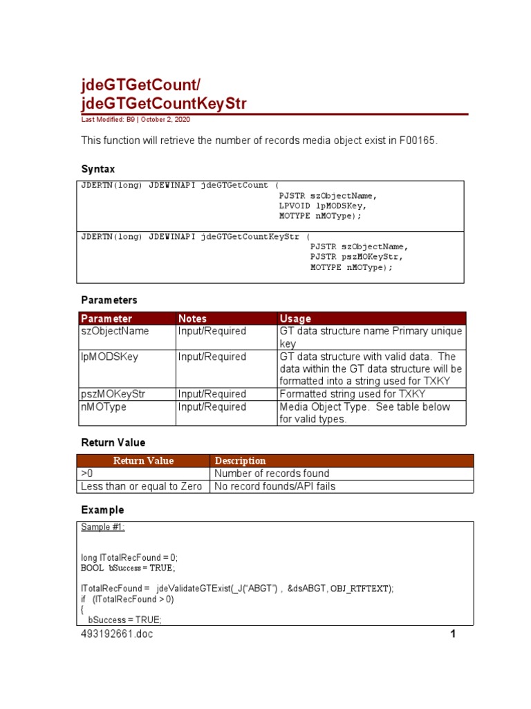 lTotalRecFound = jdeValidateGTExist(_J(“ABGT”) , &dsABGT, OBJ_RTFTEXT);