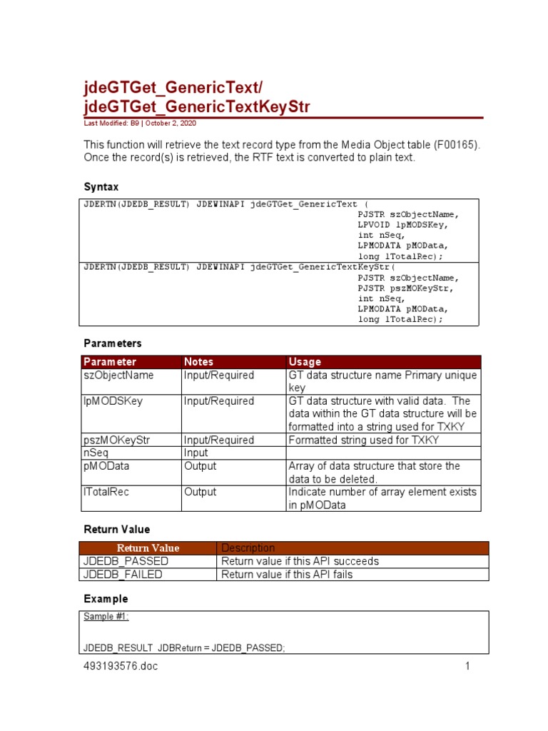 jdeGTGet_GenericText ()/jdeGTGet_GenericTextKeyStr()