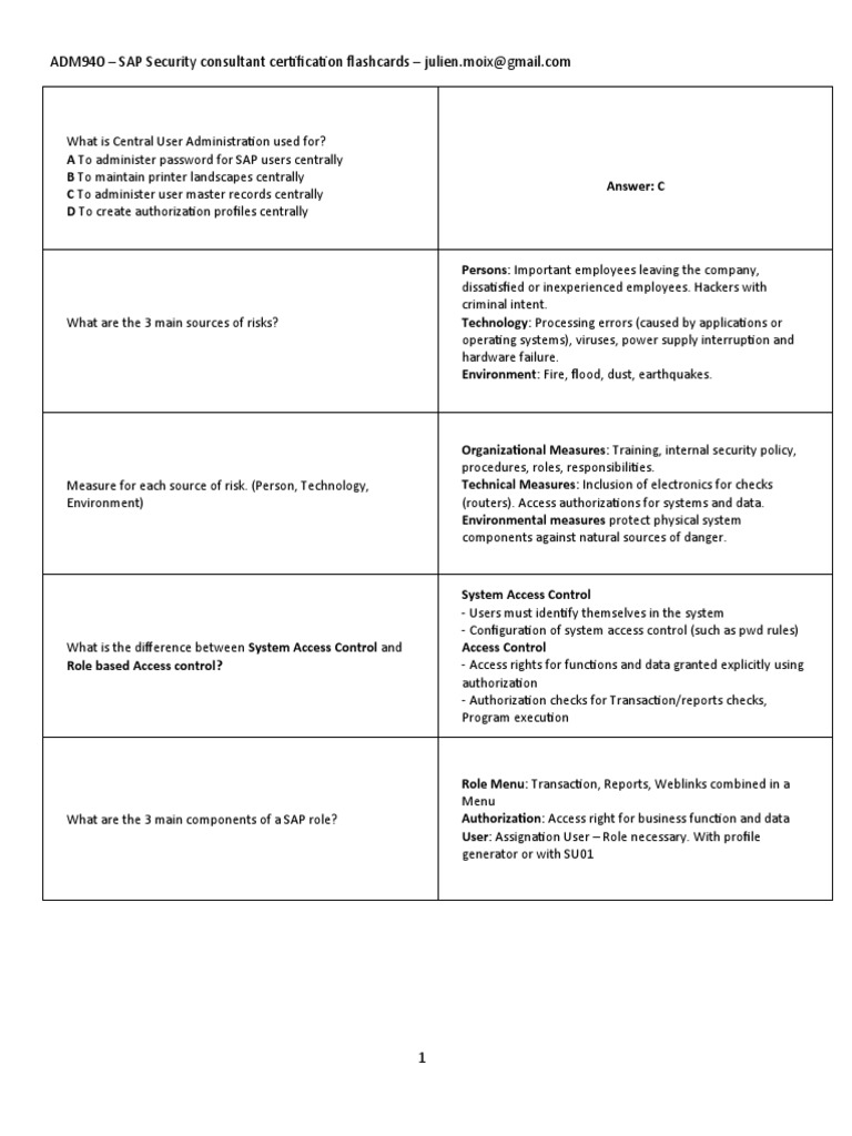 ADM940 – SAP Security consultant certification flashcards – julien.moix@gmail.