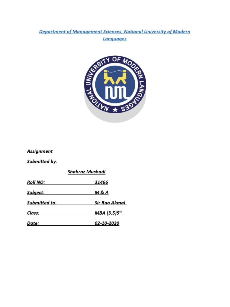 Department of Management Sciences, National University of Modern