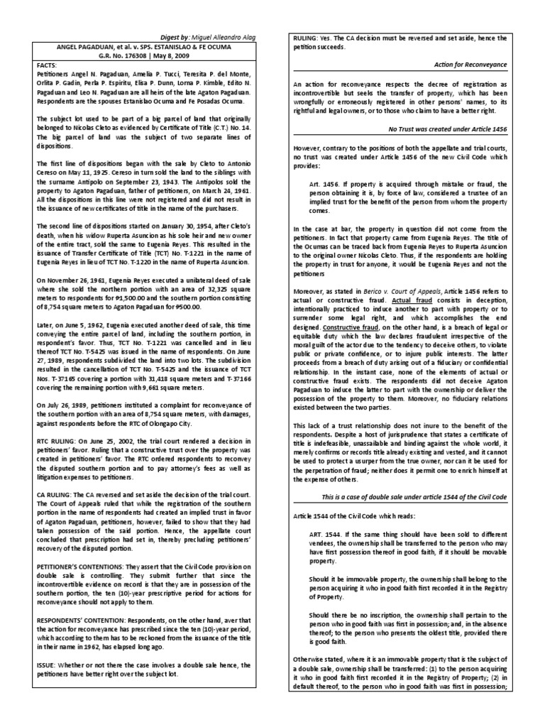 Agaton Pagaduan had purchased the property from Eugenia Reyes on