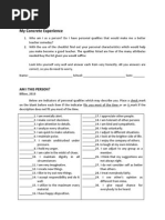 Below are indicators of personal qualities which may describe you. Place a mark on