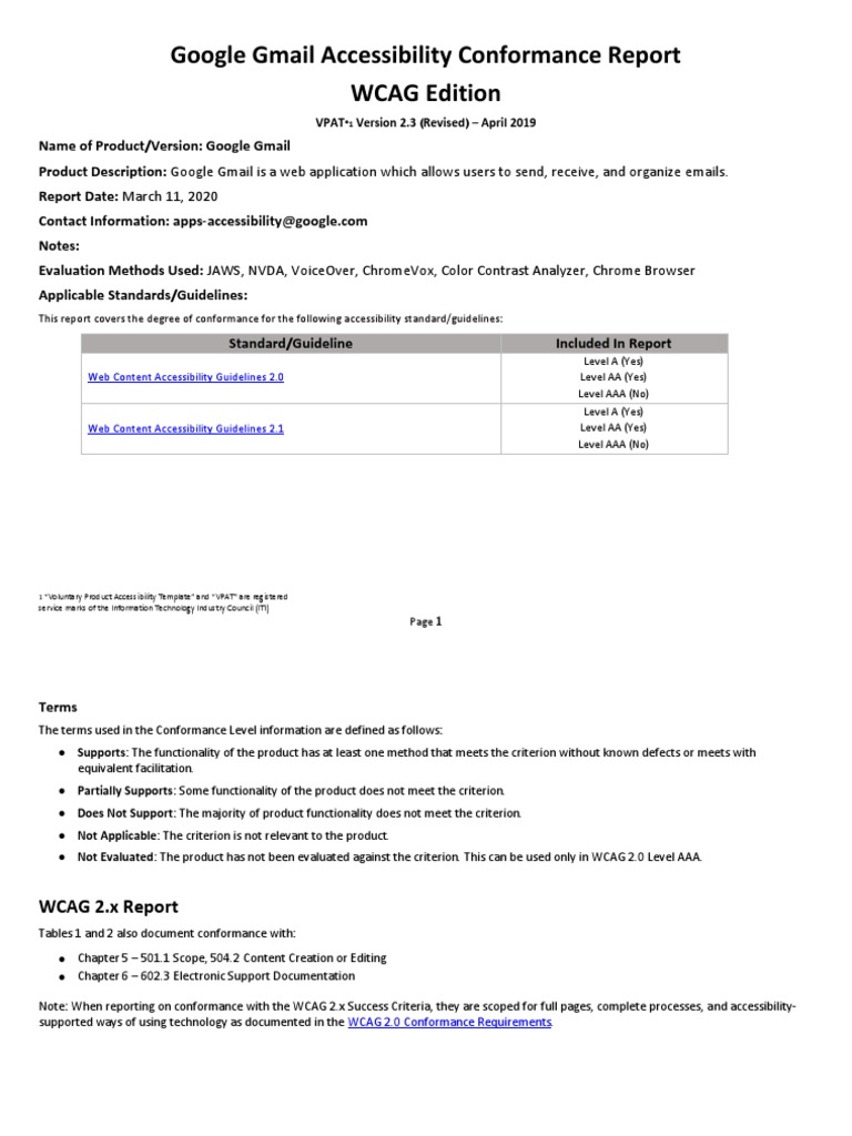 Google Gmail Accessibility Conformance Report