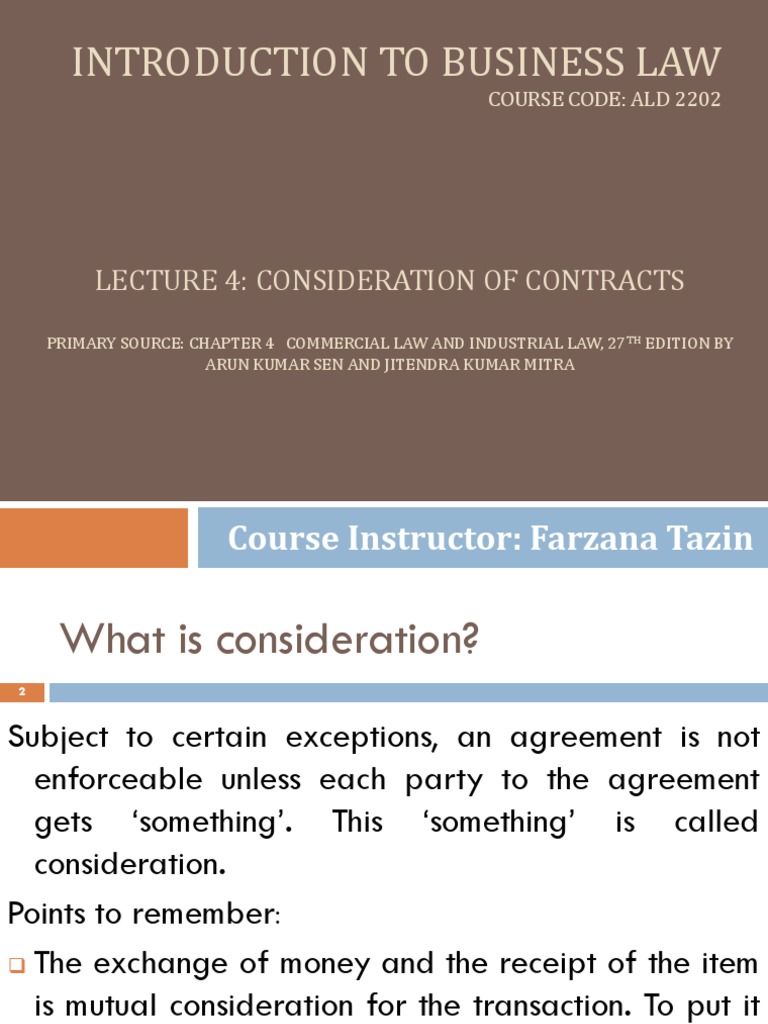 LECTURE 4: CONSIDERATION OF CONTRACTS