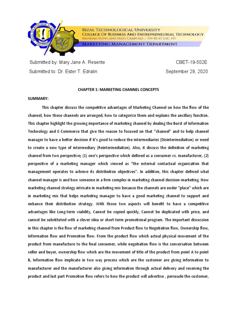 This chapter discuss the competitive advantages of Marketing Channel on how the flow of the