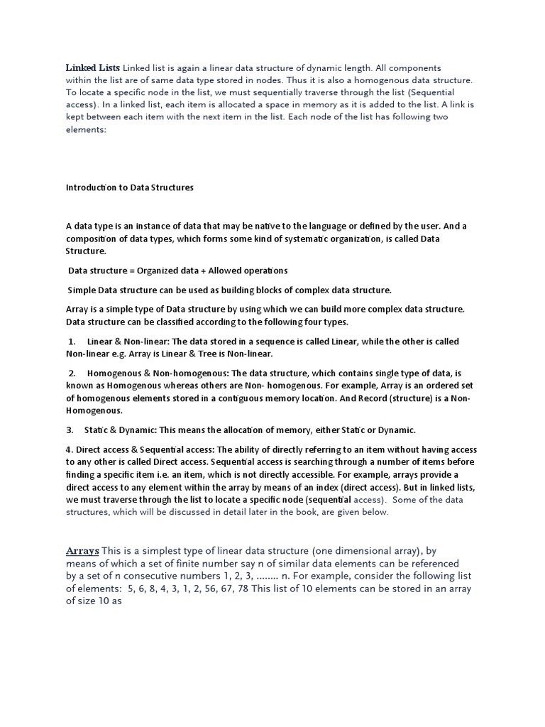 we must traverse through the list to locate a specific node (sequential access). Some of the data