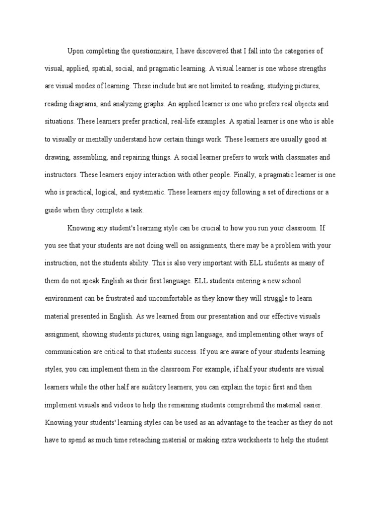 visual, applied, spatial, social, and pragmatic learning. A visual learner is one whose strengths
