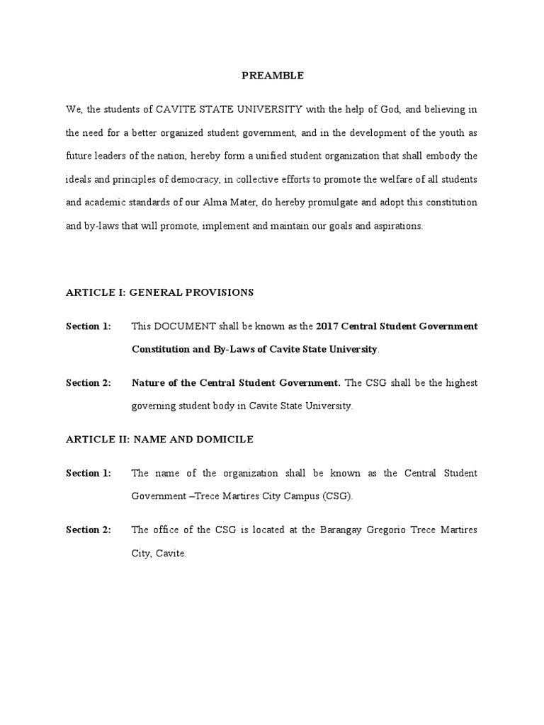 Section 2: Nature of the Central Student Government. The CSG shall be the highest